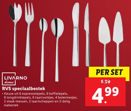 livarno home rvs koffielepels taartvorkjes botermesjes steak messen delig slabestek 5.99