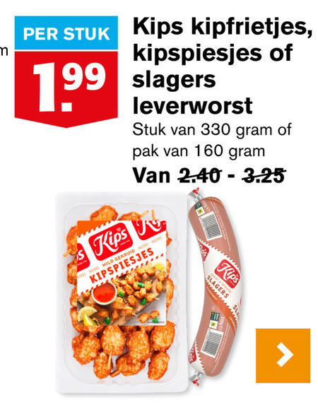 160 330 stuk kips kipfrietjes kipspiesjes slagers leverworst pak mini mild gekruid sla