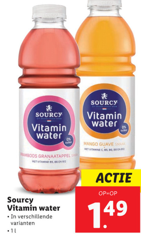 11 sourcy vitamin water suiker framboos granaatappels vitamine b5 mango guave