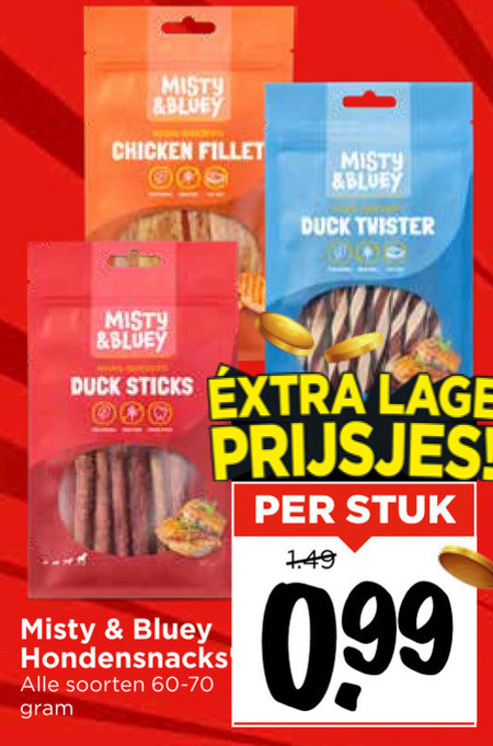 hondensnacks misty chicken fillet duck twister sticks lage prijsjes soorten stuk 99