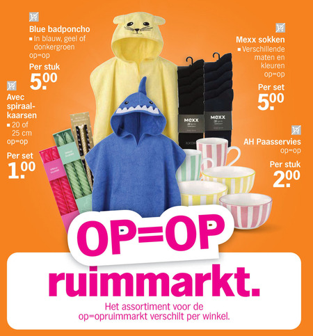 Voor veel van deze aanbiedingen geldt Op=Op of zolang de voorraad strekt. Voor sommige aanbiedingen gelden aanvullende voorwaarden. De getoonde on-line prijzen zijn zonder evt verzendkosten en een momentopname en kunnen wijzigen. Wij raden u aan ook de (on-line) folders van de winkels te bekijken voor u gaat inkopen. Voordeelmuis aanvaardt geen aansprakelijkheid voor de juistheid of volledigheid van de getoonde informatie. Lees onze volledige disclaimer. Uw privacy is gewaarborgd middels onze privacy verklaring.Heeft u opmerkingen over of aanvullingen op deze pagina? Verstuur feedback.