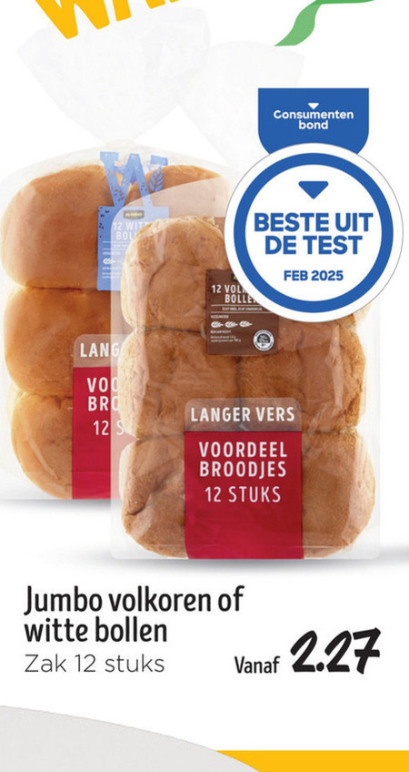 bolletjes 12 wit bolle consumenten bond lang langer vers voordeel broodjes stuks jumbo volkoren witte bollen zak
