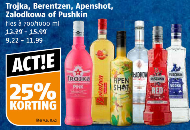 25 trojka berentzen apenshot fles 700 1000 ml pink apen shot vodka red liter v.a.