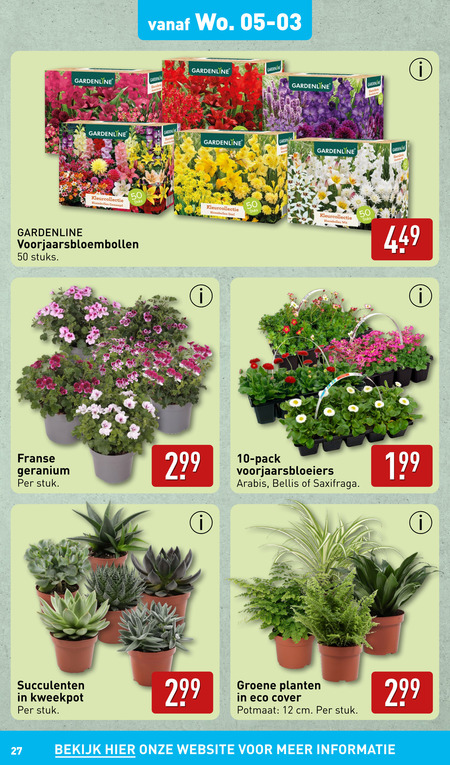 10 12 27 50 gardenline garden bloembollen gemengd voorjaarsbloembollen stuks geel wit franse geranium stuk pack voorjaarsbloeiers arabis bellis saxifraga succulenten kweekpot groene planten eco cover potmaat cm bekijk