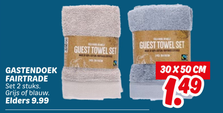 30 50 gastendoek fairtrade stuks grijs blauw elders guest towel cm