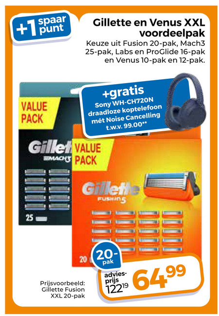 10 12 16 20 25 spaar punt pack gillette venus xxl fusion pak mach3 labs proglide sony draadloze koptelefoon noise cancelling t.w.v. gilet