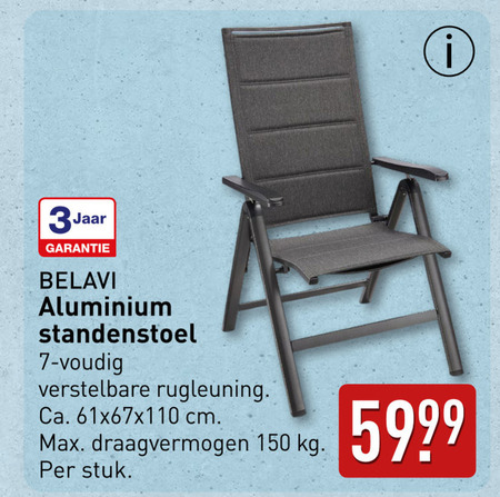150 3jaar belavi aluminium standenstoel verstelbare rugleuning ca. cm draagvermogen stuk