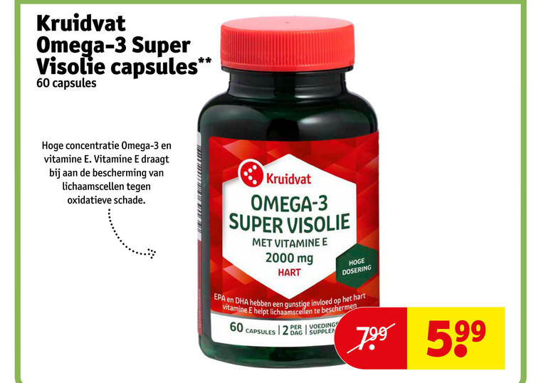 60 kruidvat omega super visolie capsules concentratie vitamine draagt bescherming lichaamscellen oxidatieve schade mg hart dosering beschermen dag