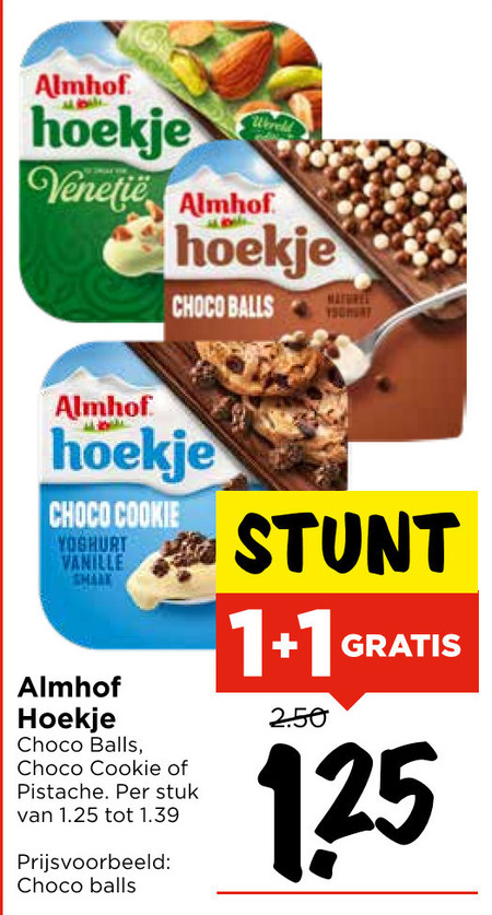 almhof hoekje choco balls cookie yoghurt vanille shark pistache stuk