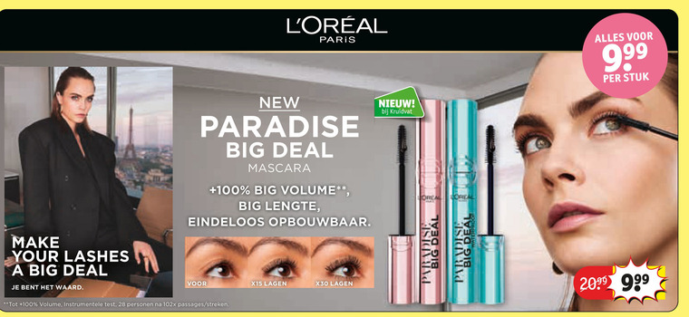28 100 paris new paradise big deal mascara volume lengte eindeloos opbouwbaar make your lashes waard x15 lagen instrumentele personen passages kruidvat stuk