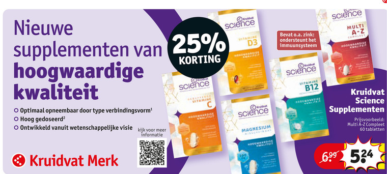 25 60 200 nieuwe supplementen hoogwaardige optimaal opneembaar hoog gedoseerd ontwikkeld wetenschappelijke science vitamine kruidvat o.a. zink ondersteunt immuunsysteem magnesium nat multi tabletten merk