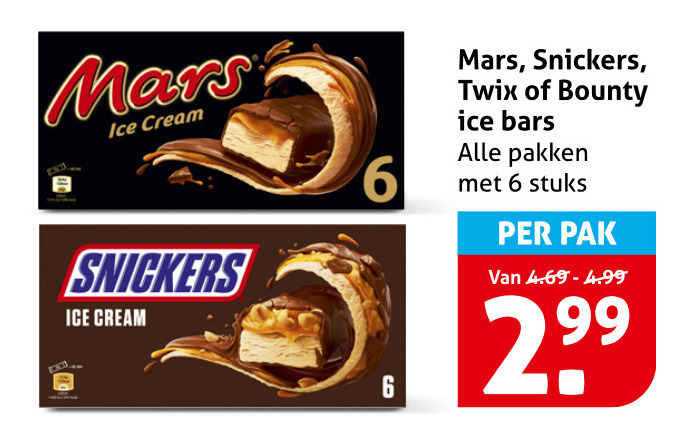 mars ice cream snickers twix bounty bars pakken stuks pak