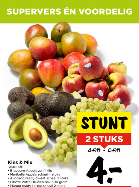 500 supervers mix braeburn appels zak kilo schaal stuks avocado ready to pitloze witte druiven bak mango