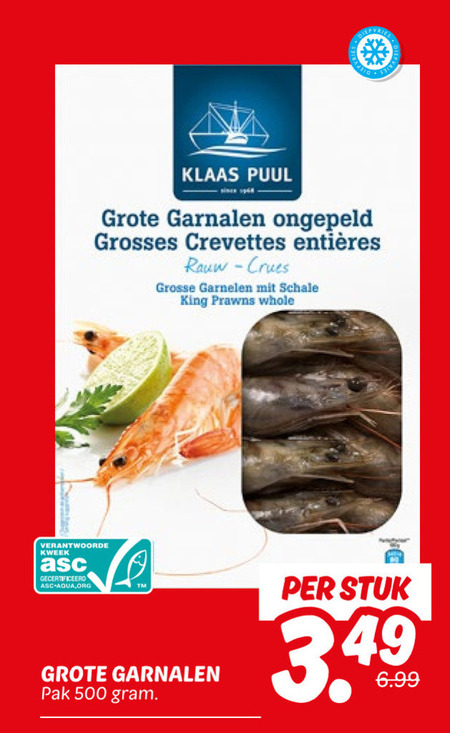 500 fles klaas garnalen ongepeld crevettes rauw cruesli grosse schalen king prawns whole kweek gecertificeerd asc-aqua.org pak stuk