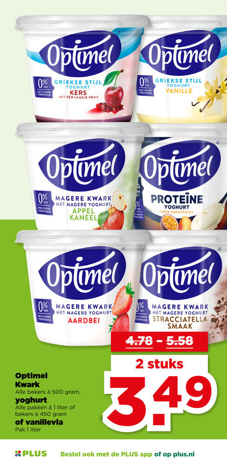 450 500 optimel griekse stijl vet suiker yoghurt kers laagje fruit vanille kwark appel kaneel perzik passievrucht aardbei bekers pakken liter vanillevla pak stracciatella stuks plus.nl