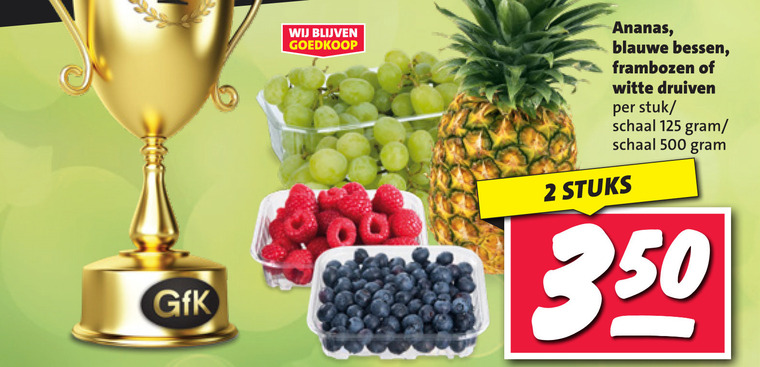500 gfk 00 ananas blauwe bessen frambozen witte druiven stuk schaal stuks