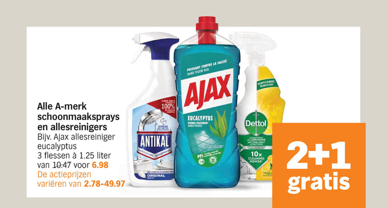 99 100 merk schoonmaaksprays allesreinigers ajax allesreiniger eucalyptus flessen liter varieeren antikal anti kalkreiniger original la salete hard vuil double fraicheur buren desinfectie model dettol 10x cleaning power tout