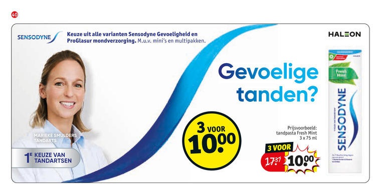 40 1000 sensodyne gevoeligheid proglasur mondverzorging multipakken marieke smulders tandarts tandartsen gevoelige tanden tandpasta fresh mint ml