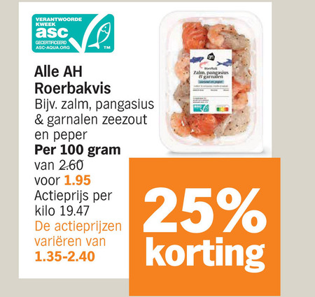 25 100 kweek gecertificeerd asc-aqua.org roerbakvis zalm pangasius garnalen zeezout peper actieprijs kilo varieeren