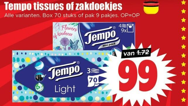 99 tempo tissues zakdoekjes box stuks pak flowers mini pack light