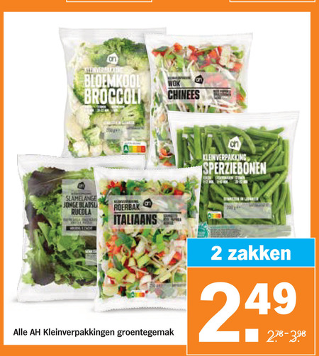 bloemkool broccoli chinees sperziebonen slamelange jonge rucola roerbak italiaans kleinverpakkingen groentegemak zakken
