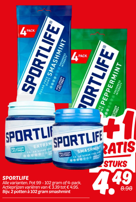 99 pack sportlife sugar free smashmint freshness lasting peppermint longer intensity ca. pot varieeren potten stuks