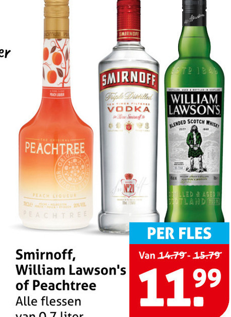 20 smirnoff peachtree triple distilled vodka william blended scotch peach liqueur flessen fles