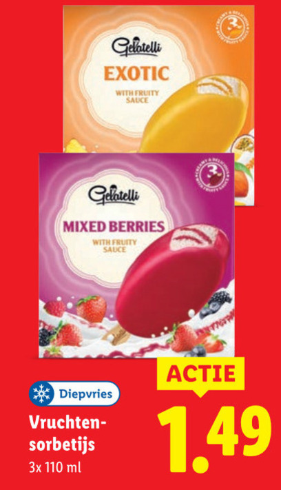 gelatelli exotic with fruity sauce mixed berries diepvries vruchten sorbetijs 3x ml