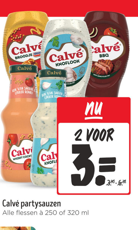 100 250 320 calve broodje uno knoflook bbq ruk romig rom pet gerecycled calvi whisky partysauzen flessen ml