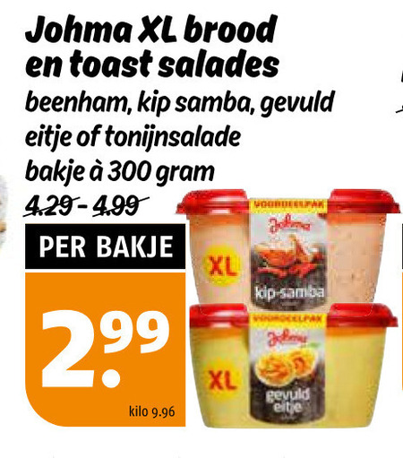 300 johma xl brood toast salades beenham kip samba gevuld eitje tonijnsalade bakje kilo