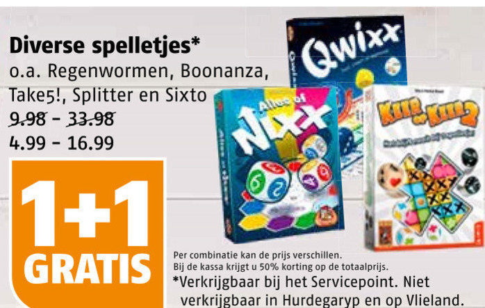 kaartspelletjes 50 spelletjes qwixx o.a. regenwormen boonanza splitter combinatie kassa servicepoint hurdegaryp vlieland