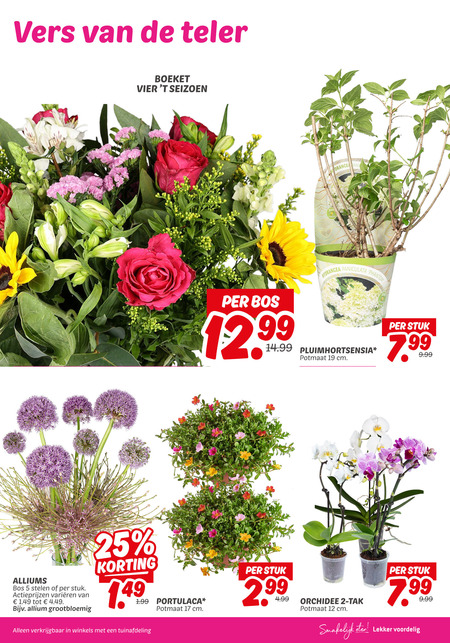 Voor veel van deze aanbiedingen geldt Op=Op of zolang de voorraad strekt. Voor sommige aanbiedingen gelden aanvullende voorwaarden. De getoonde on-line prijzen zijn zonder evt verzendkosten en een momentopname en kunnen wijzigen. Wij raden u aan ook de (on-line) folders van de winkels te bekijken voor u gaat inkopen. Voordeelmuis aanvaardt geen aansprakelijkheid voor de juistheid of volledigheid van de getoonde informatie. Lees onze volledige disclaimer. Uw privacy is gewaarborgd middels onze privacy verklaring.Heeft u opmerkingen over of aanvullingen op deze pagina? Verstuur feedback.