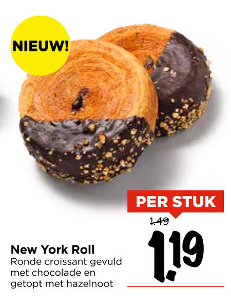 new york roll ronde croissant gevuld chocolade getopt hazelnoot stuk