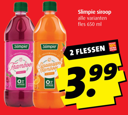 10 650 slimpie siroop fles ml framboos sinaasappel flessen 3.99