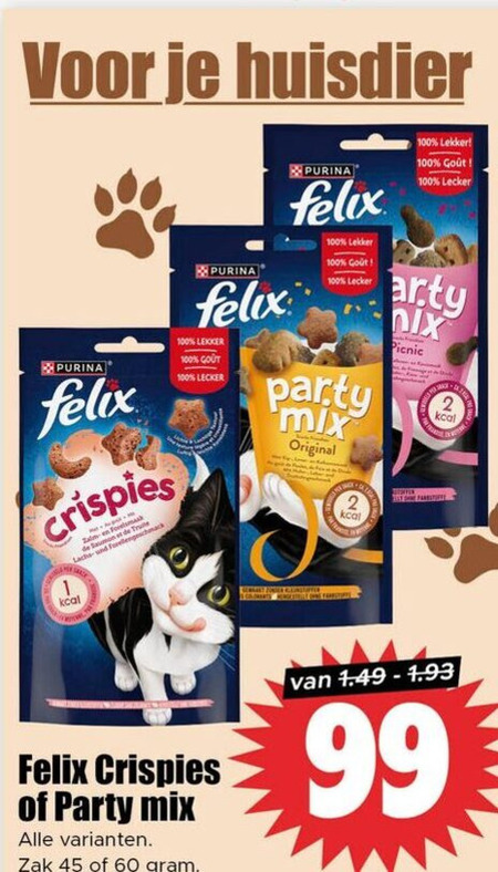 45 60 99 100 huisdier purina felix crispies gout party mix original picnic zak