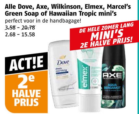dove axe wilkinson elmex green soap hawaiian tropic handbagage zomer lang 2e halve aqua bergamot