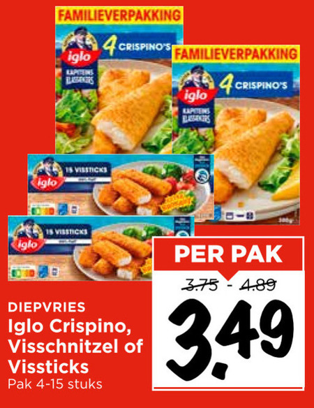 familieverpakking iglo cr vissticks diepvries crispino visschnitzel pak stuks