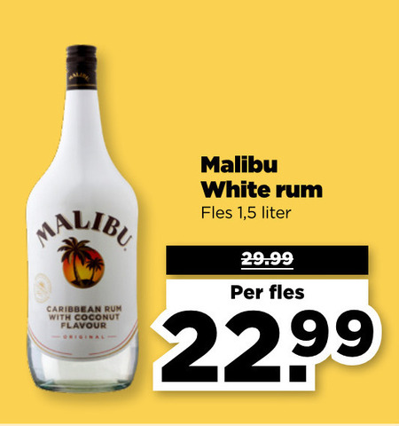 malibu caribbean rum with coconut flavour white fles liter