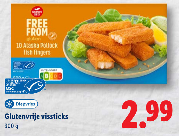 10 300 ocean sea free from gluten alaska fish fingers gecertificeerd duurzame visserij www.msc.org nl nutri score diepvries glutenvrije vissticks
