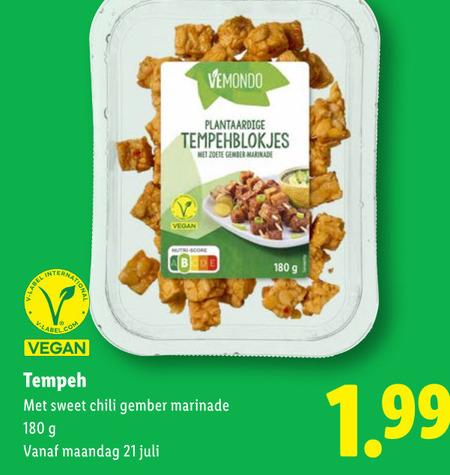 180 vemondo label international tempeh plantaardige zoete gember marinade nutri score sweet chili maandag