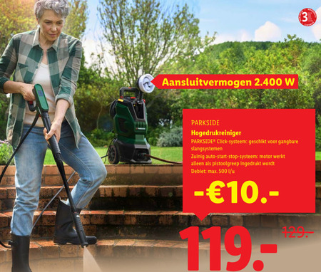 500 parkside hogedrukreiniger click systeem gangbare slangsystemen auto start stop motor pistoolgreep ingedrukt debiet