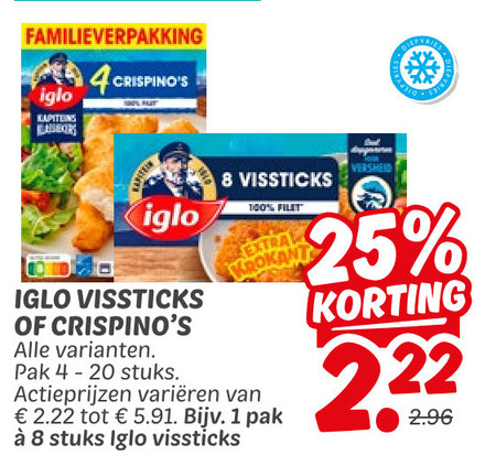 25 100 familieverpakking iglo vissticks krokant pak stuks varieeren versheid