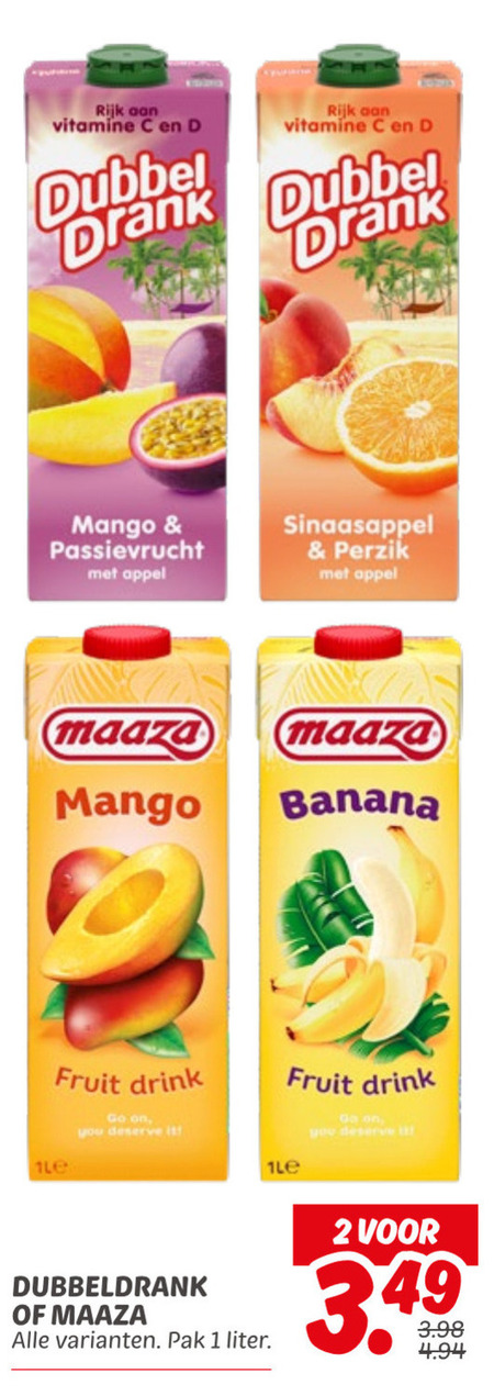 rijk vitamine dubbel drank mango passievrucht appel sinaasappel perzik maaza banana fruit drink go you it dubbeldrank pak liter