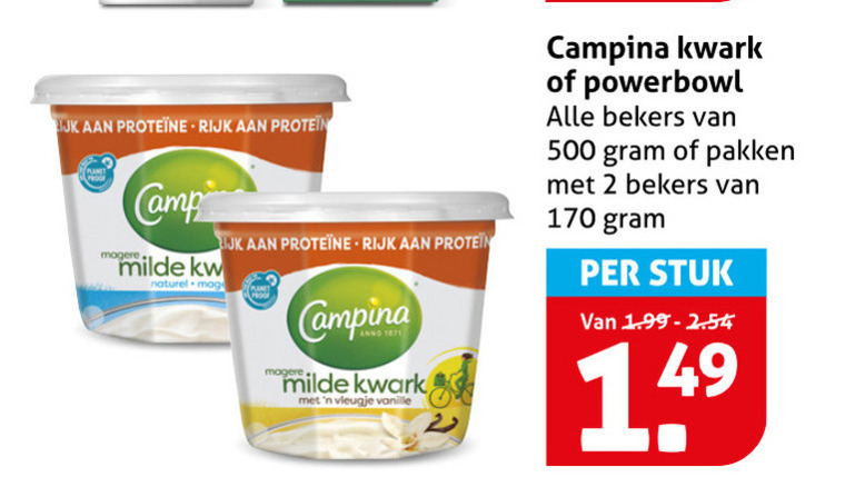500 rijk protein camp milde naturel magere campina anno kwark vleugje vanille bekers pakken stuk