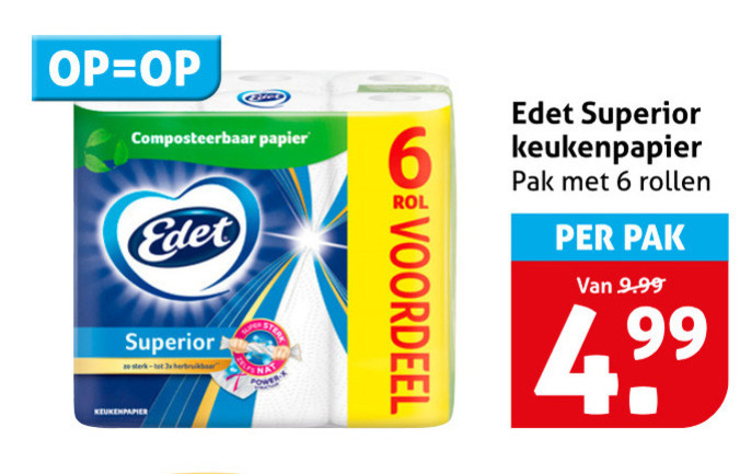 composteerbaar papier rol edet superior 3x keukenpapier voordeel pak rollen