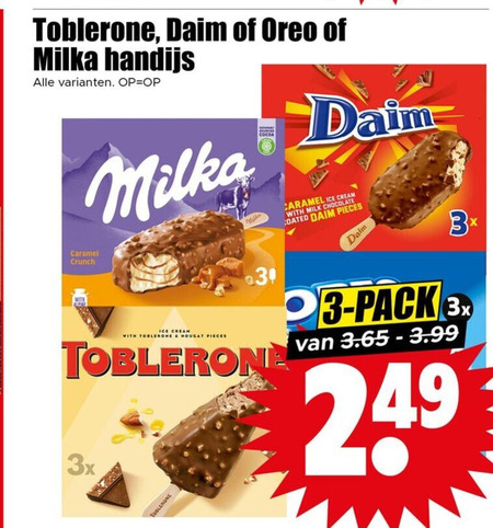 toblerone daim oreo milka handijs caramel crunch ice cream with milk chocolas coated nougat pieces 3x pack