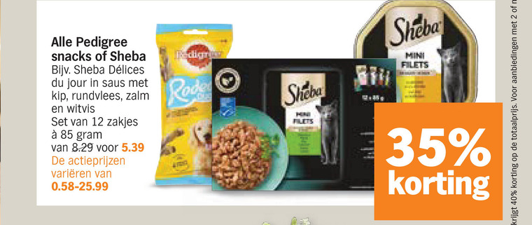 12 35 40 sheba mini filets pedigree snacks du jour saus kip rundvlees zalm witvis zakjes varieeren rode
