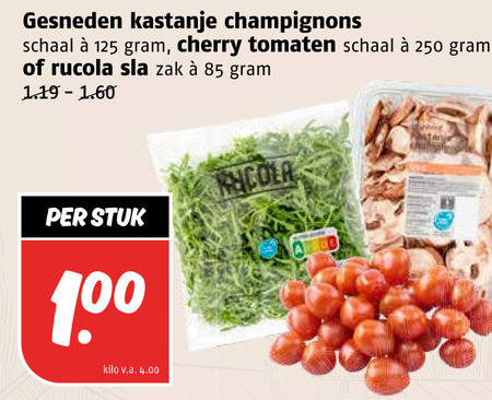 100 250 gesneden kastanje champignons schaal cherry tomaten rucola sla zak stuk kilo v.a.
