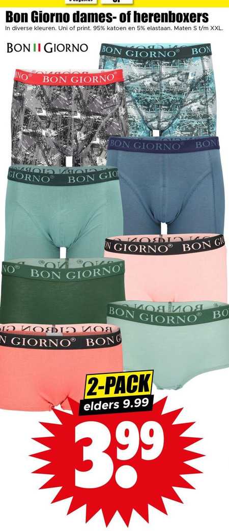 heren boxershorts bon giorno dames herenboxers kleuren uni print katoen elastaan maten xxl ii gio pack elders 3.99