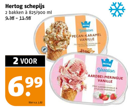 hertog schepijs bakken 825 ml liter v.a. nursing yssalon pecan karamel vanille aardbei meringue aardbeiensaus stukjes